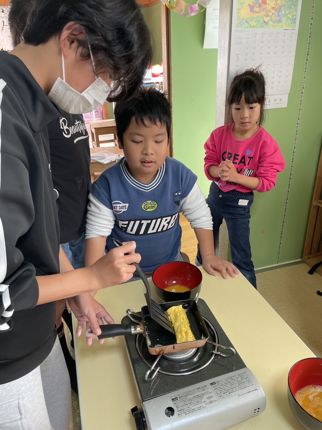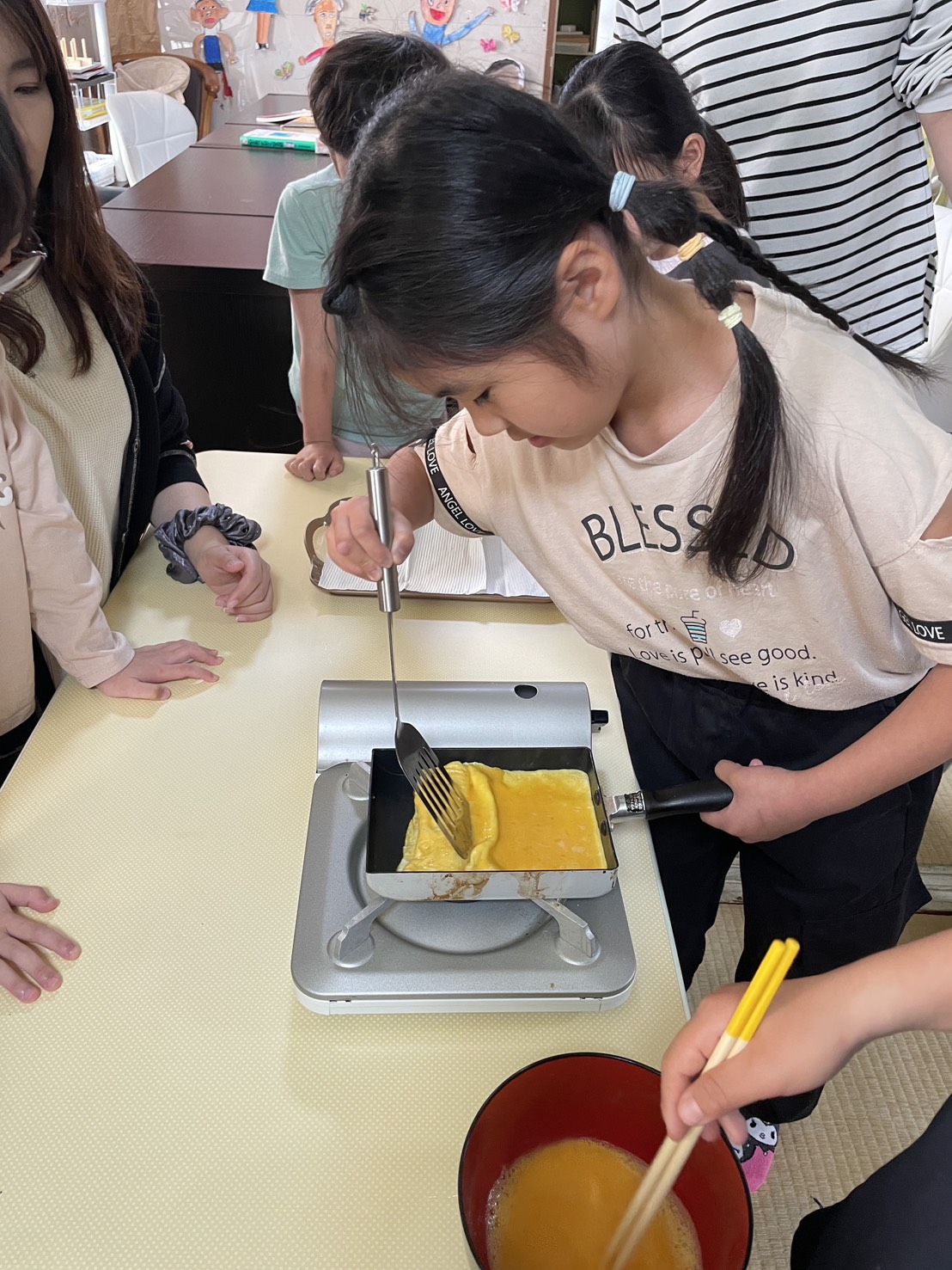 朝はみんなでお弁当作り🍱卵焼きを作りました。みんな上手に巻けていていましたicon_razz.gif